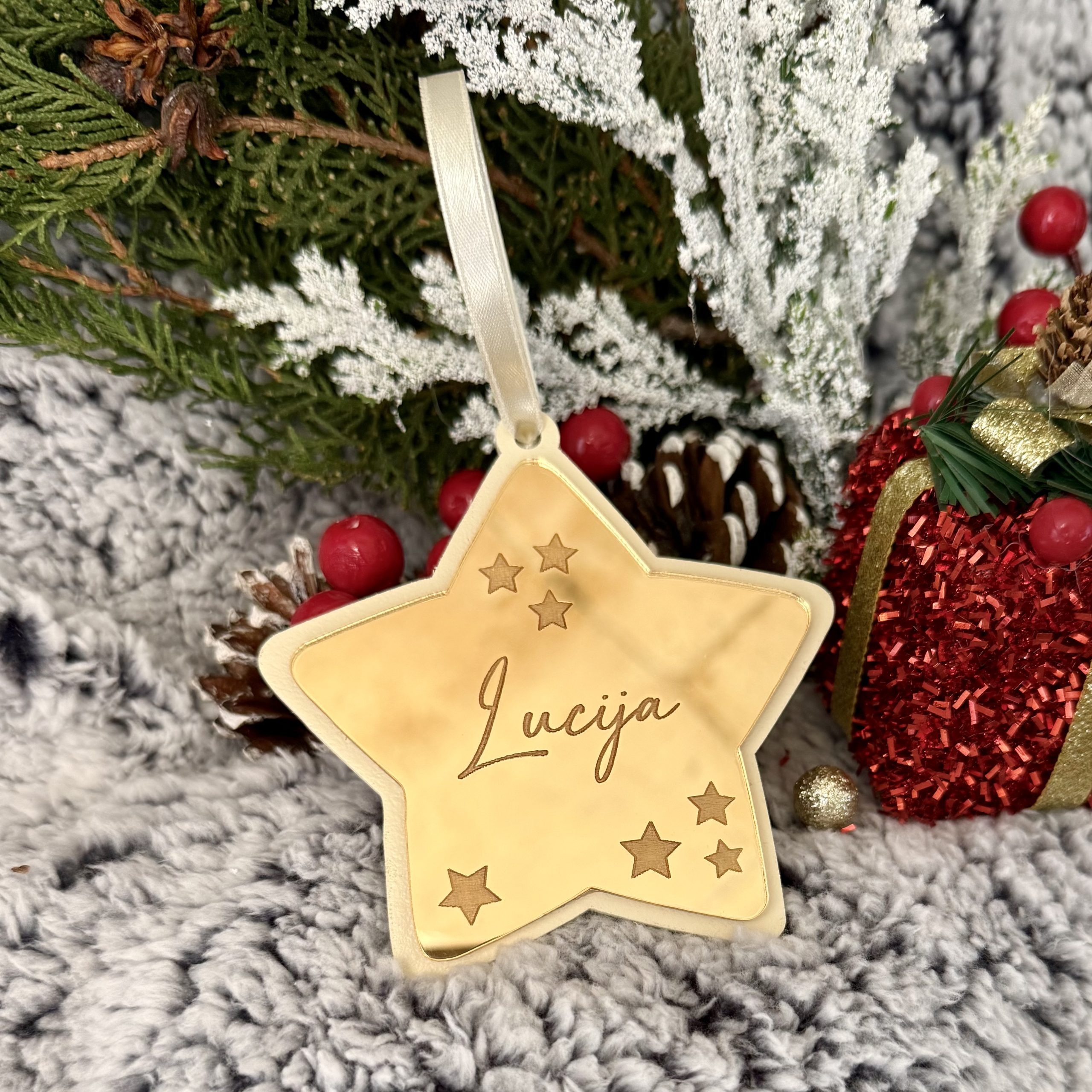 Unesite posebnu čaroliju u svoju novogodišnju dekoraciju uz naš elegantni personalizovani ukras. Svaki komad izrađuje se pažljivo i sa ljubavlju, a mogućnost dodavanja imena čini ga jedinstvenim detaljem koji će oduševiti i velike i male.