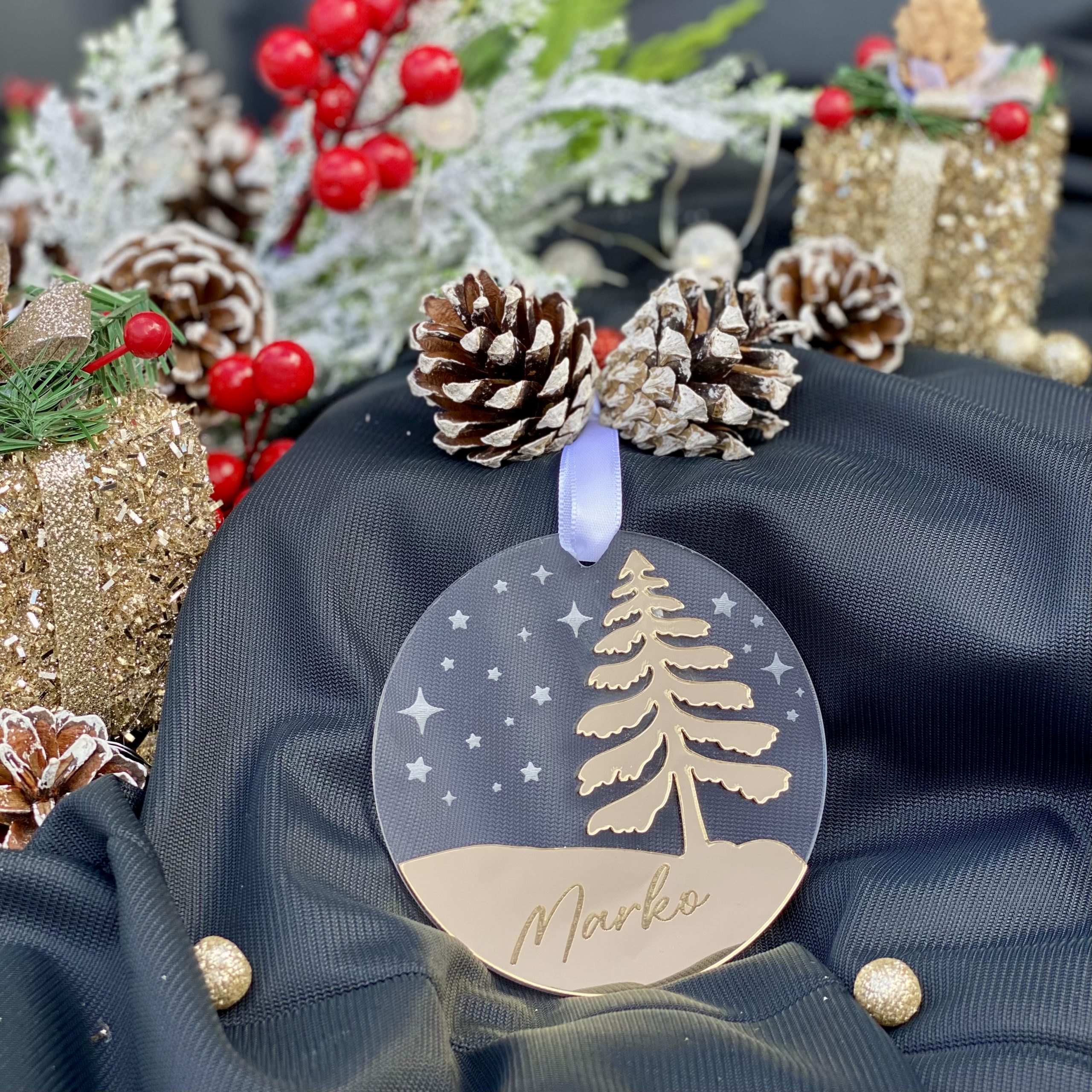 Unesite posebnu čaroliju u svoju novogodišnju dekoraciju uz naš elegantni personalizovani ukras. Svaki komad izrađuje se pažljivo i sa ljubavlju, a mogućnost dodavanja imena čini ga jedinstvenim detaljem koji će oduševiti i velike i male.